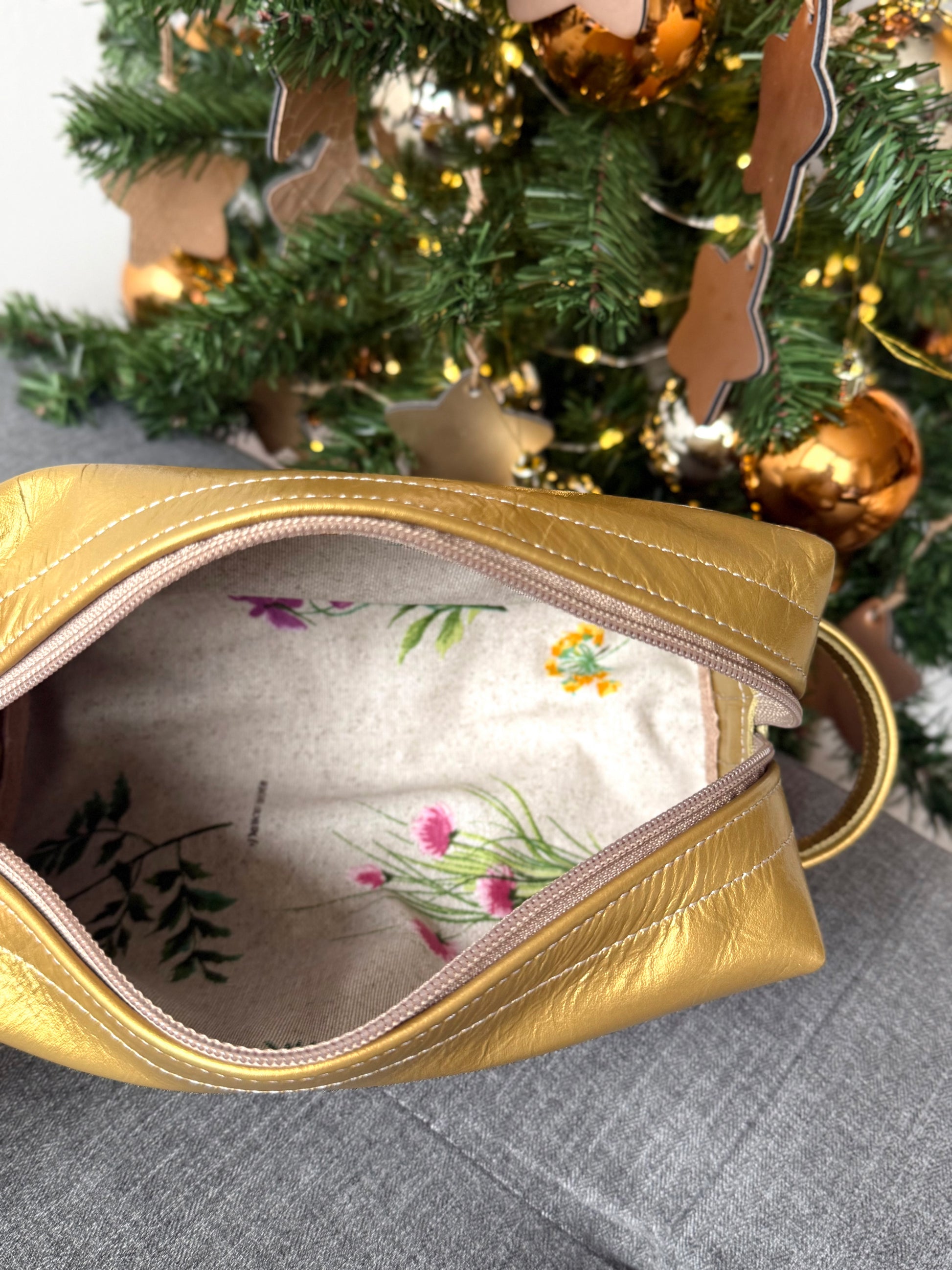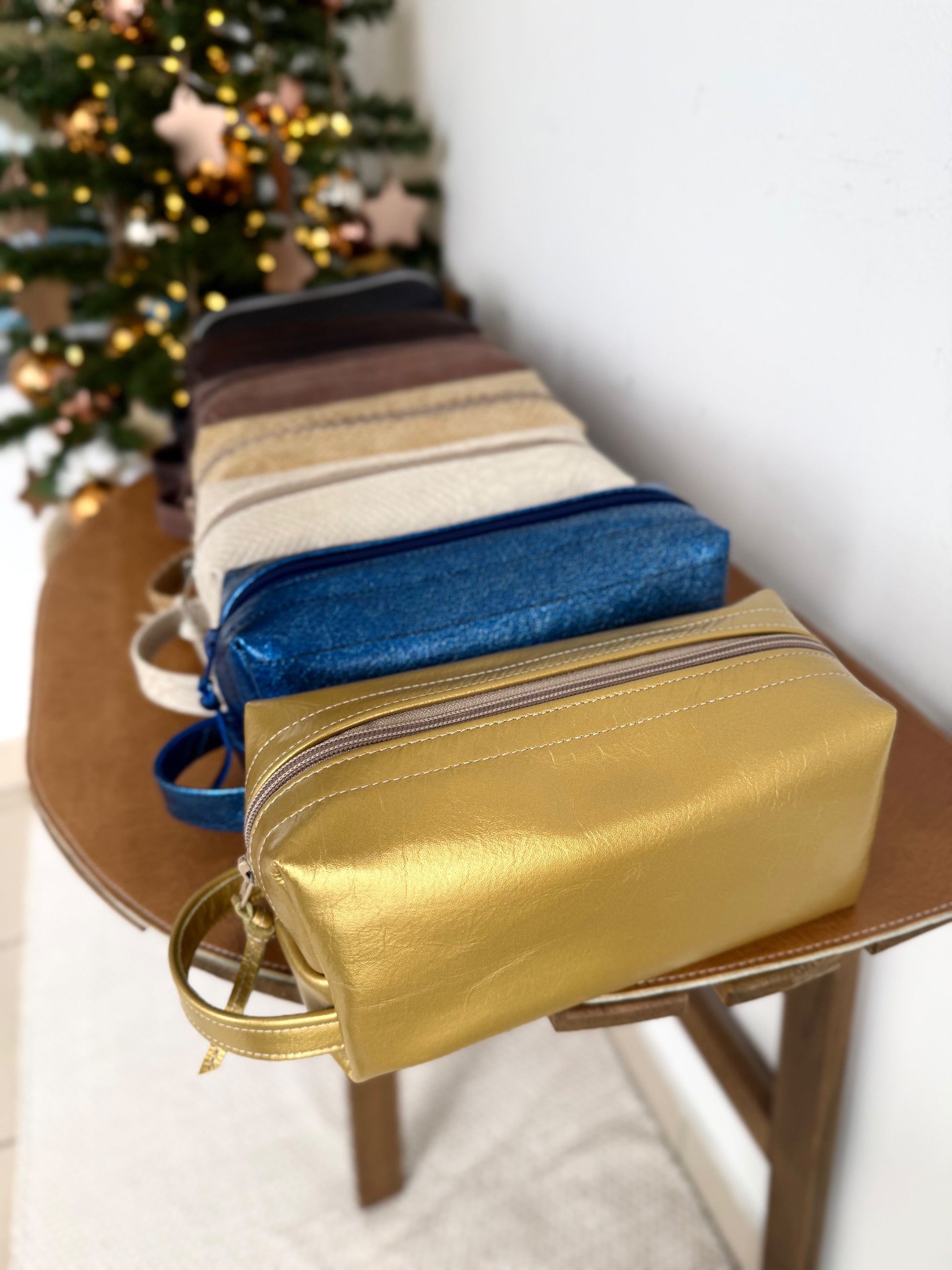 Univerzalna usnjena torbica, zasnovana za vsakodnevno uporabo in potovanja. Uporablja se lahko kot toaletna torbica, ročna torbica, puščica, organizator za osebne predmete, potovalni etui ali shranjevalna torbica za dodatke (polnilci, dokumenti, kozmetika).