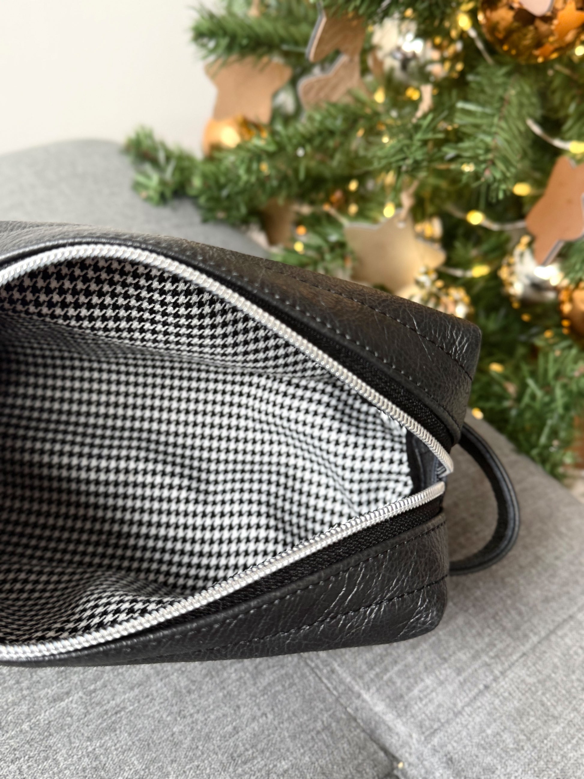 Univerzalna usnjena torbica, zasnovana za vsakodnevno uporabo in potovanja. Uporablja se lahko kot toaletna torbica, ročna torbica, puščica, organizator za osebne predmete, potovalni etui ali shranjevalna torbica za dodatke (polnilci, dokumenti, kozmetika).