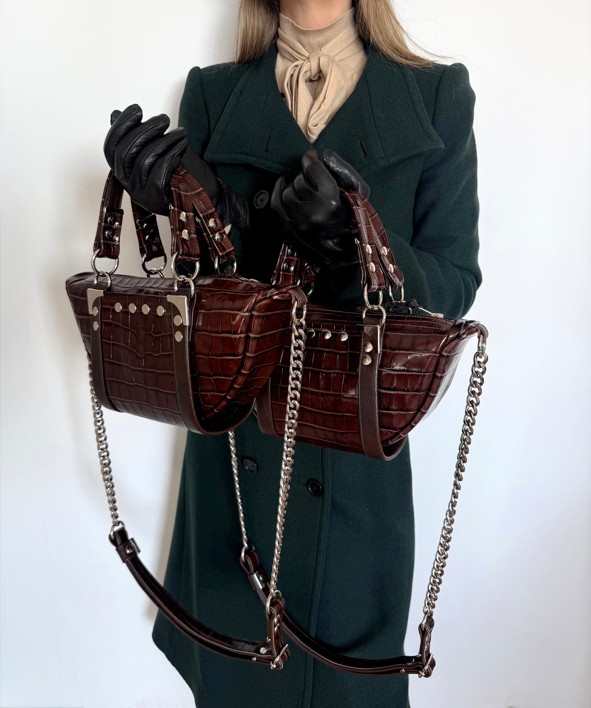 Ta izjemna ročno butično izdelana torbica je ustvarjena za tiste, ki cenijo brezčasno eleganco, vrhunske materiale in dovršene detajle. Izdelana je iz zelo kakovostnega pravega usnja s croc potiskom rjave barve. Tudi notranjost je v celoti podložena z usnjem, kar torbici daje občutek prestiža in izjemne trpežnosti.